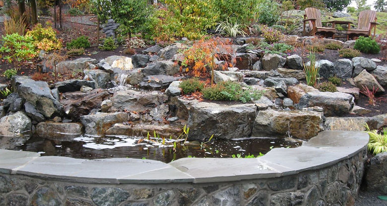 Waterfalls: Engineered drops of water that may be incorporated into ponds or streams, often supported with stone or concrete structures.